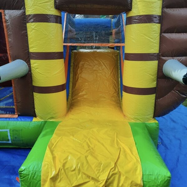 Piedāvājam nomā lielformāta piepūšamo spēli Futbola darts XXL. Spēli var spēlēt jebkurš azartisks spēlētājs, jebkurā vecumā. Lielisks papildinājums lielām un mazām sporta spēlēm, kā arī aizraujošs notikums privātā bērnu vai pieaugušo pasākumā. Spēlētājs var spēlēt divos variantos gan sperot bumbu, gan metot bumbu mērķī ar roku. Uzvar tas spēlētājs vai komanda, kuri sakrāj visvairāk punktus. Izmēri 5,60m x 2,10m x 3,70m. Komplektā divu krāsu bumbas 10gb.,gaisa pūtējs. Piegāde neietilpst nomas cenā!